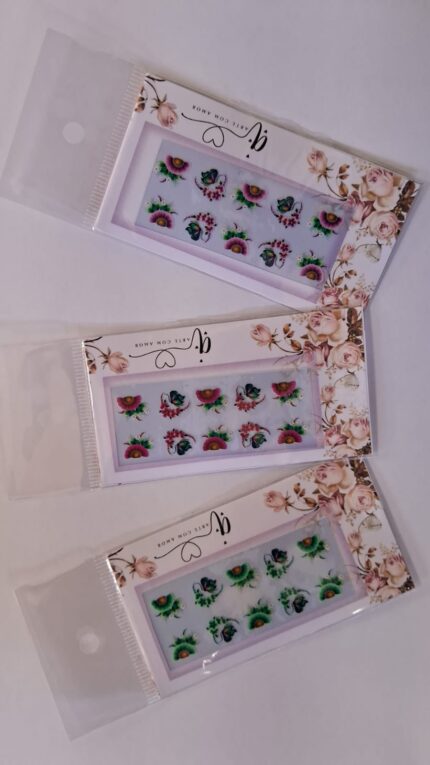 Kit 200 Cartelas Adesivo 3d Joia De Unha Floral