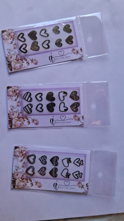 Transforme suas unhas com este kit exclusivo de adesivos 3D em formato de coração, nas cores preto e dourado. Ideal