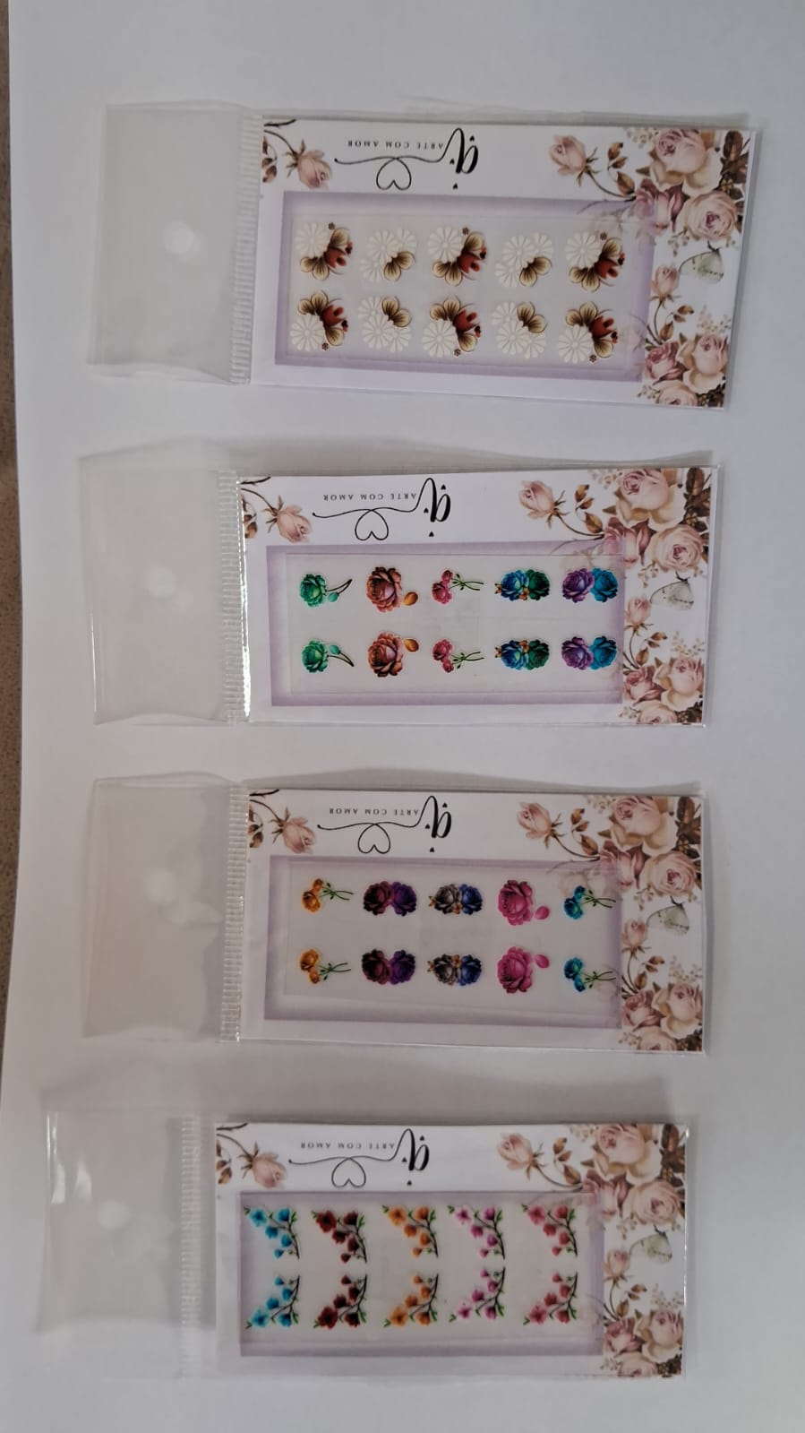 Kit 200 Cartelas Adesivo 3d Joia De Unha Floral